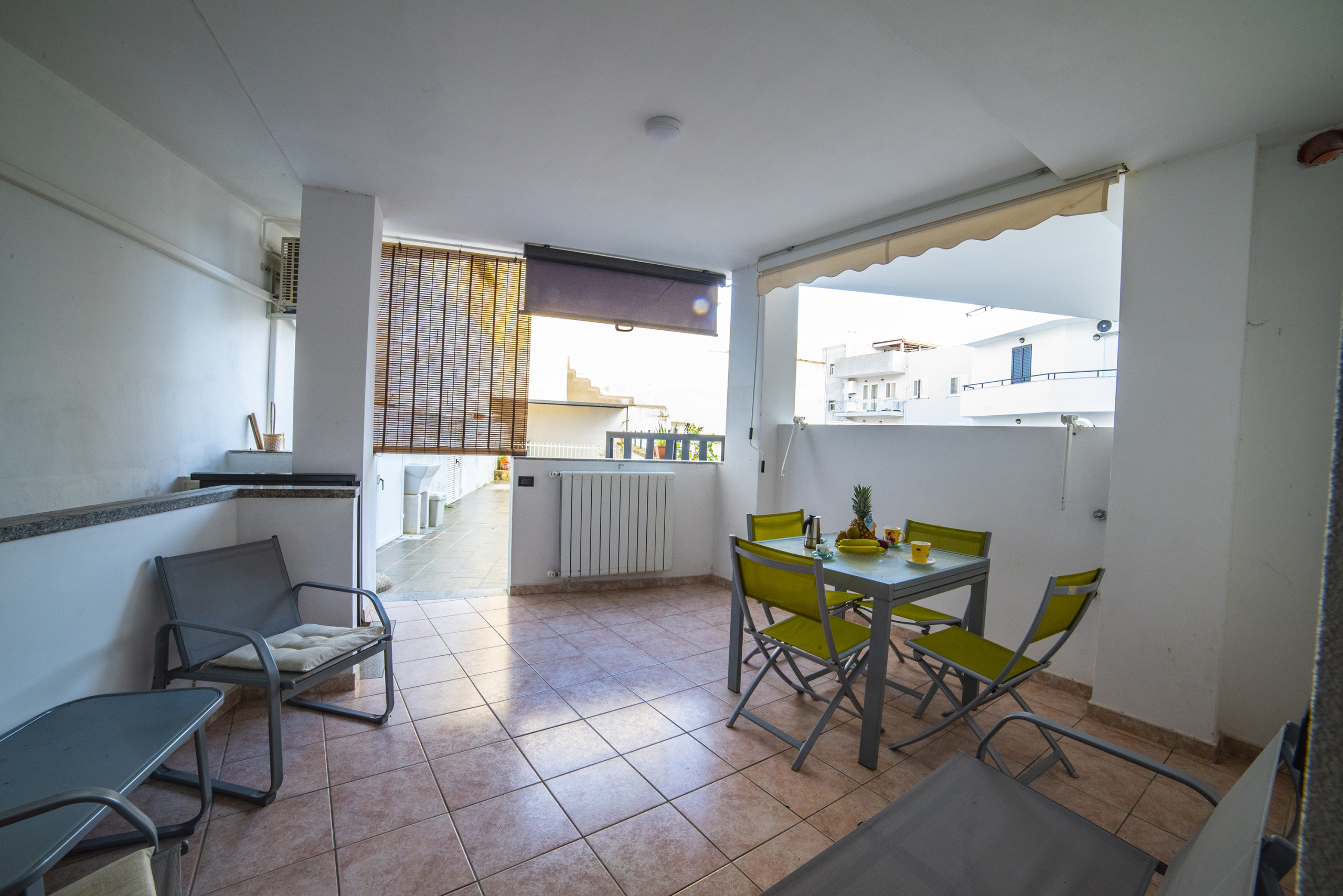 Il quartiere è molto tranquillo, è presente il comando di polizia sulla medesima strada ad un centinaio di metri dall'accesso dello stabile. Tutto raggiungibile comodamente a piedi, sia il bel porto, che i servizi e le vie di passeggio serali. La spiaggia di sabbia dista 10 minuti, sempre a piedi. Sarete pertanto perfettamente posizionati nella fine cittadina Otrantina.